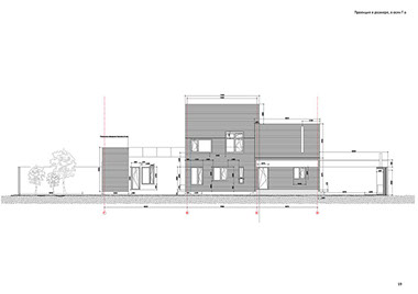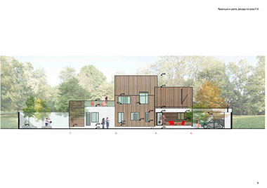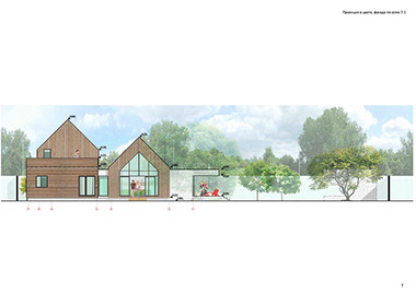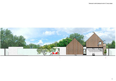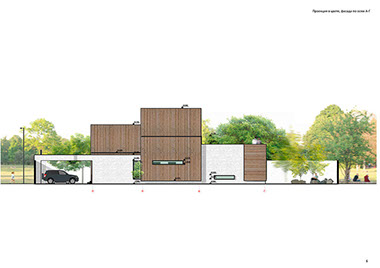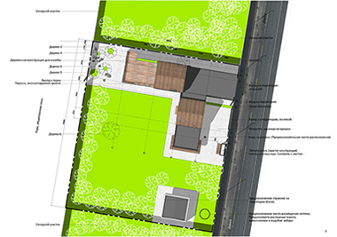 Задача - дом для семьи из 4 человек до 249 квадратных метров полезной площади. Необходима парковочная зона на 2 транспортных средства, так же гостевые парковочные места, из-за расположения дома вдоль дороги. Нужна большая гостиная-кухня, так как много друзей и общения. Это поспособствовало разделению блоков "спокойного" от "активного", между которыми- блок с обслуживающей техникой.