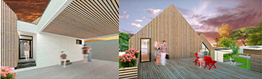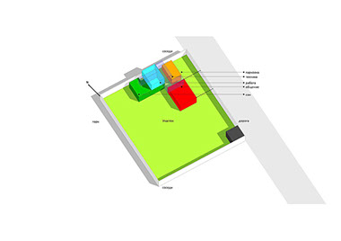 Второй этаж- это уже эстетическая необходимость заказчика. В закрытом блоке второго этажа находятся кабинет и мастерская с выходом через коридор на террасу с цветником.