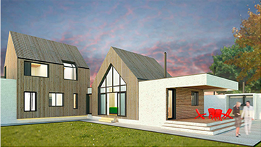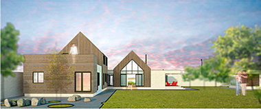 Дом вытянутый, ориентирован остеклением на юг, а к северу- коридорами, это повышает эффективность энергии тепла. Конструкция "СИП" панели на винтовых сваях.