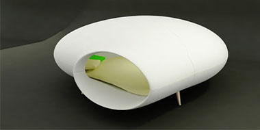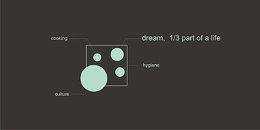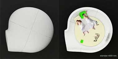 Комната сна- концепт из серии Архитектура, как предмет (Архитектура, как материализованный страх). Выглядит она как отдельно стоящий предмет в помещении и может передвигаться по нему. Он реализует функцию сна в жизни человека. Судя из исследований, в такой комнате лучше выспаться.