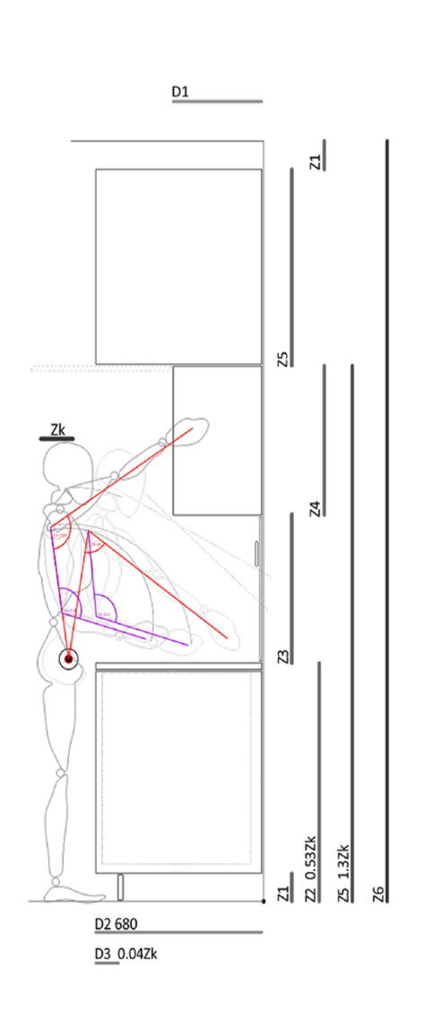 Схема полезного объема кухни.