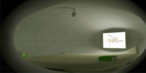 Комната сна- концепт из серии Архитектура, как предмет (Архитектура, как материализованный страх). Выглядит она как отдельно стоящий предмет в помещении и может передвигаться по нему. Он реализует функцию сна в жизни человека. Судя из исследований, в такой комнате лучше выспаться.